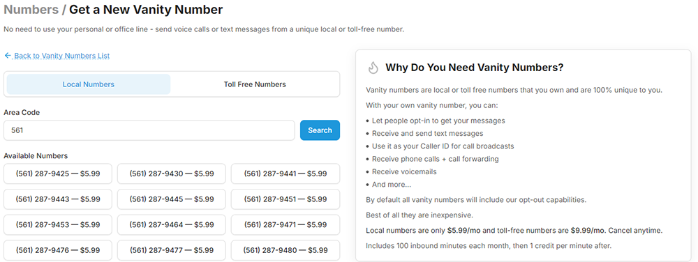 Buy a vanity number, local or toll-free, from DialMyCalls to use as your unique caller ID when sending out automated calls. As mentioned above, your unique vanity number can also be used to set up a custom hotline.