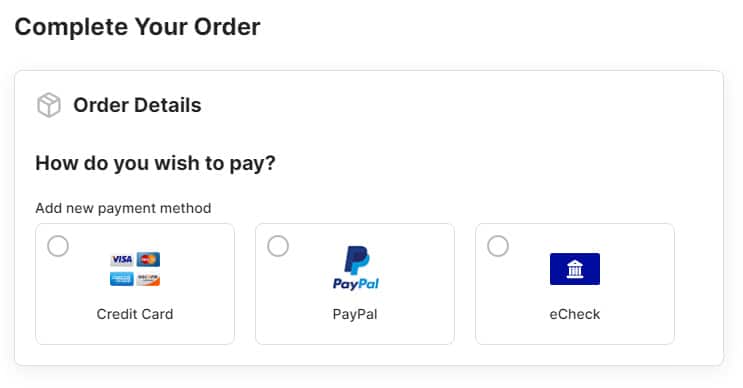 - E-Check: If you would like to pay by check online then you are able to request this payment method a member of our staff will contact you once it has been activated on your account. E-Checks are able to purchase credits, monthly plans or any of our additional features.