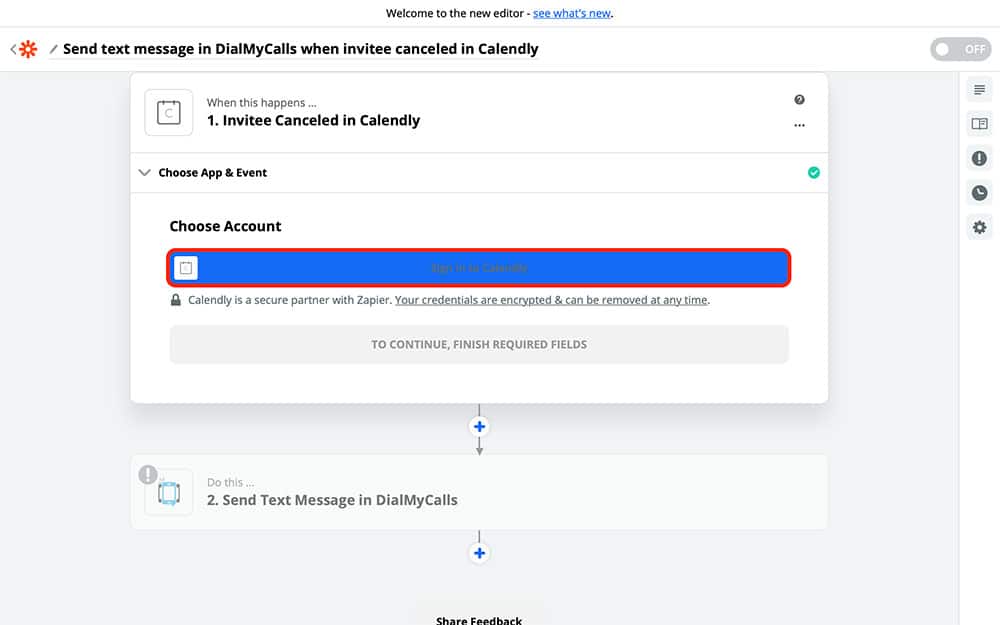 - Chose Calendly as our Trigger app and DialMyCalls as our Action app