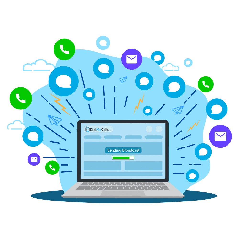 For immediate or high-priority updates. Mass texting systems like DialMyCalls Emergency Texting and our voice broadcast tools let you reach thousands of people instantly.