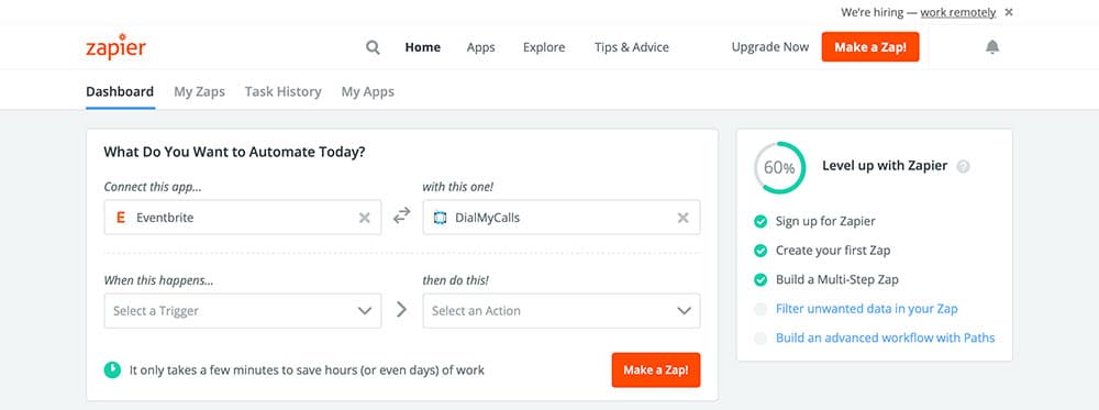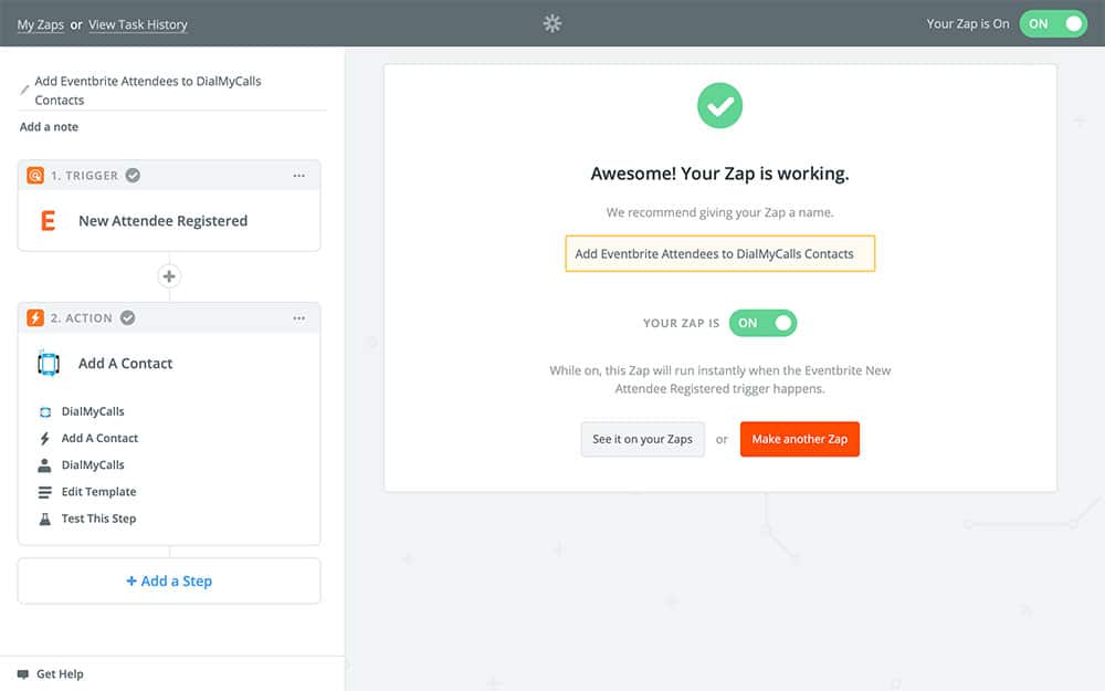 This Eventbrite Integration is only a sample of what can be accomplished through DialMyCalls + Zapier. Don’t hesitate to explore what else the service has to offer, and get creative with your automations!