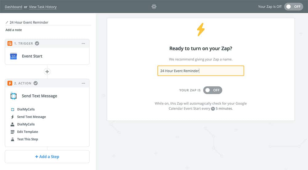 This Google Calendar integration is only one example of the ways that you can use DialMyCalls with Zapier. Don’t hesitate to experiment with your own ideas and utilize the platform to its fullest potential!