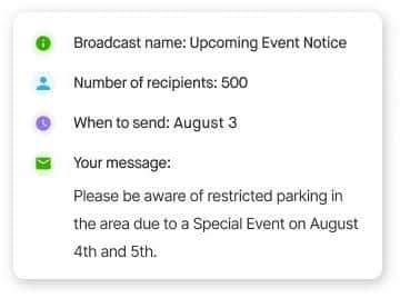 Whether addressing crime updates via neighborhood watch initiatives or calling off sports events due to unexpected circumstances, this swift response function guarantees that pertinent parties remain well-informed and ready.