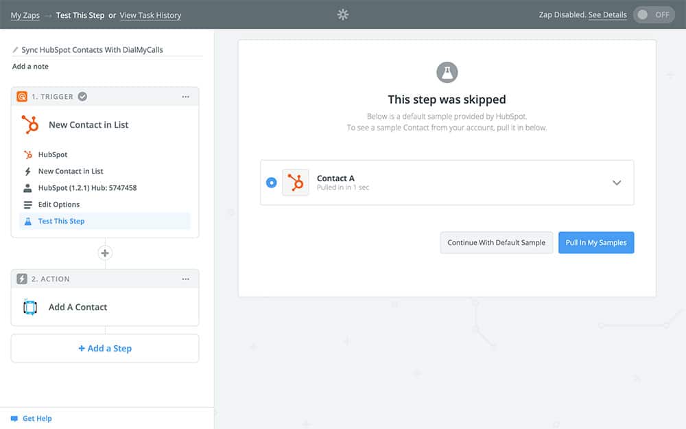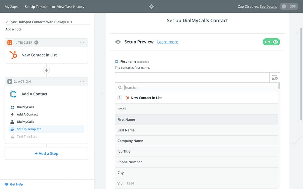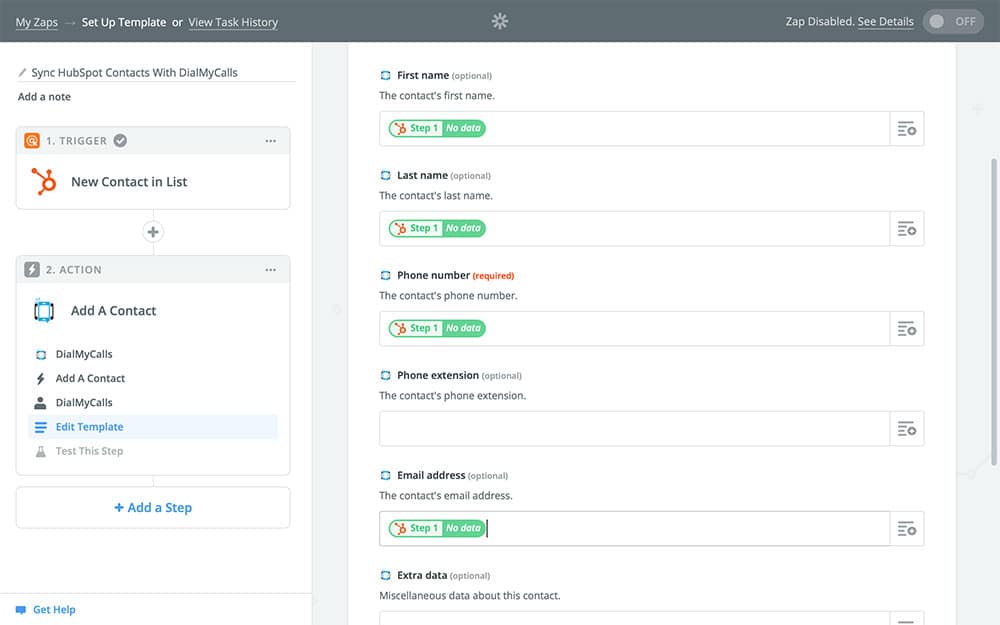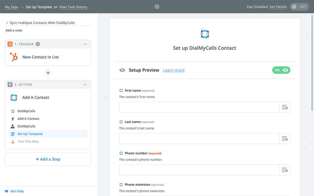 - Set up DialMyCalls to copy the information from any new HubSpot contacts into DialMyCalls when the Zap runs, effectively keeping the two services in sync with one another