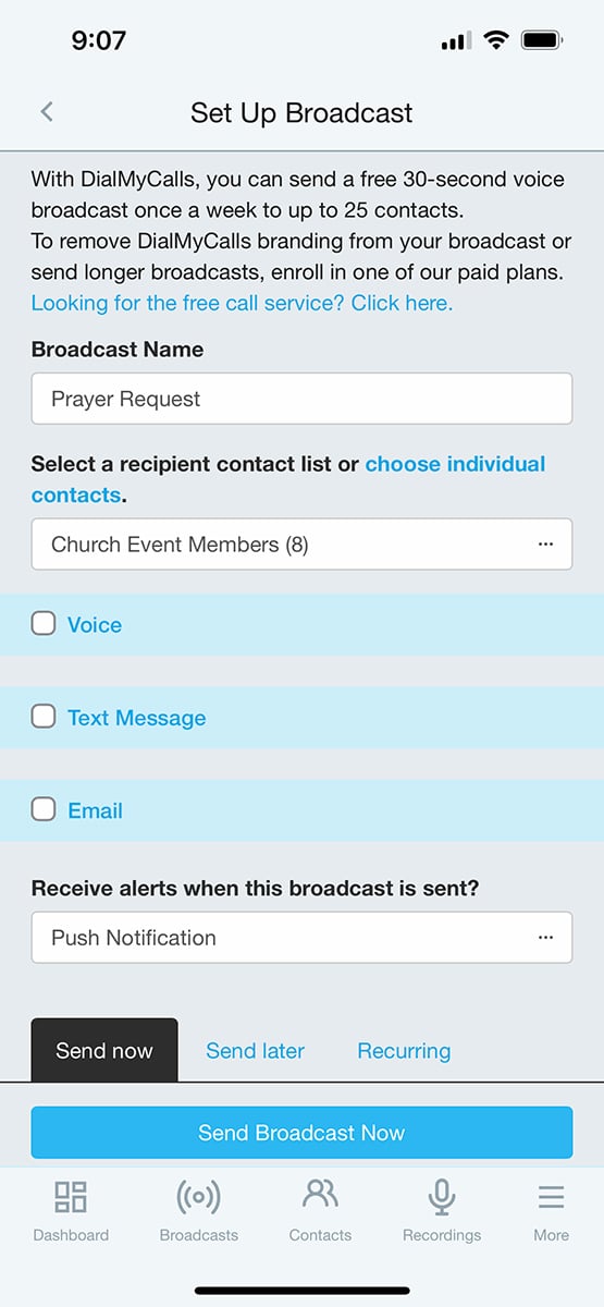 Once a free phone tree app has been set up, future phone messages and texts can be sent with a click of a button, making ongoing communication simple and fast.