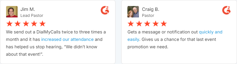 “I am a youth minister and have spent hours in the past calling students individually to remind them of an upcoming event or to get out an urgent announcement. With DialMyCalls.com, I cut that time down to about 1 minute. I also love how I can see exactly who answered live and how long they listened so I know if they heard the whole message. DialMyCalls.com is the best website I have stumbled upon all year! Thanks!”