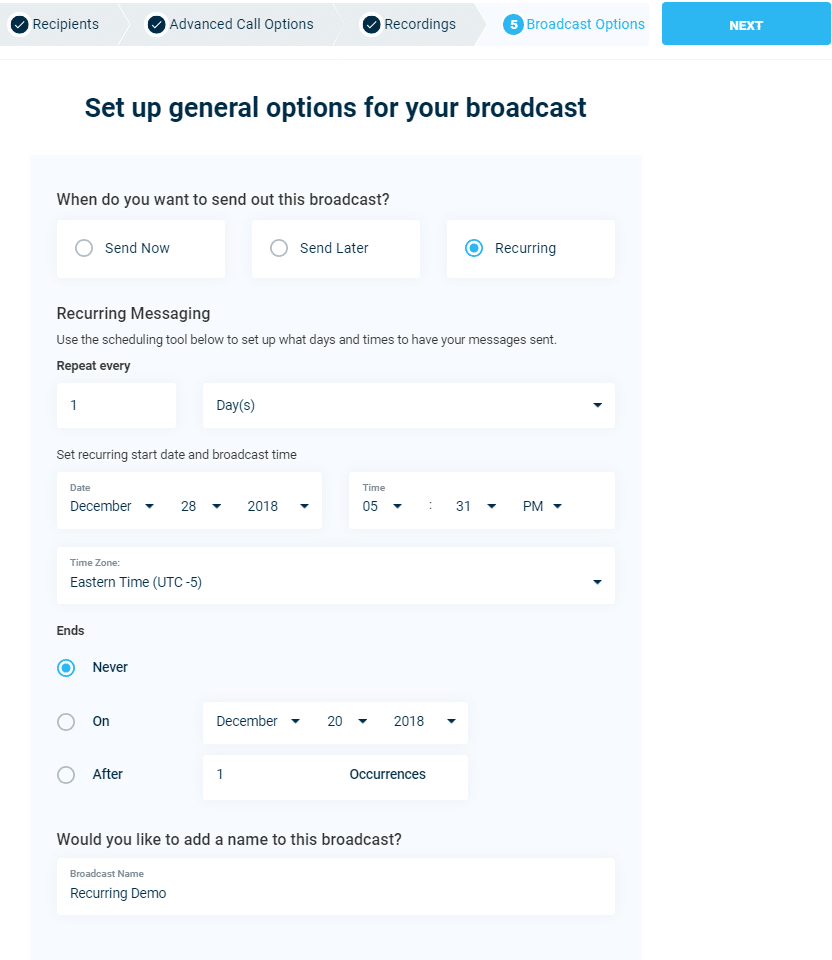 Don’t let the stress of remembering to send out rent reminders every month get you down! DialMyCalls offers the perfect solution with our recurring messages feature. Set up an automated phone call, text message and/or email broadcast to go out to all your residents/tenants on a specific day and/or time. At the end of each month you can set up a text message to be sent to everyone in your apartment complex about rent being due. Property managers can set up a recurring message to go out every week with the latest news regarding the neighborhood. You can set up as many recurring messages as needed and easily manage them right from your DialMyCalls account.