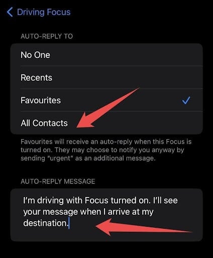 6. Select who you’d like to send an auto-reply to—whether No One, Recents, Favorites or All Contacts.