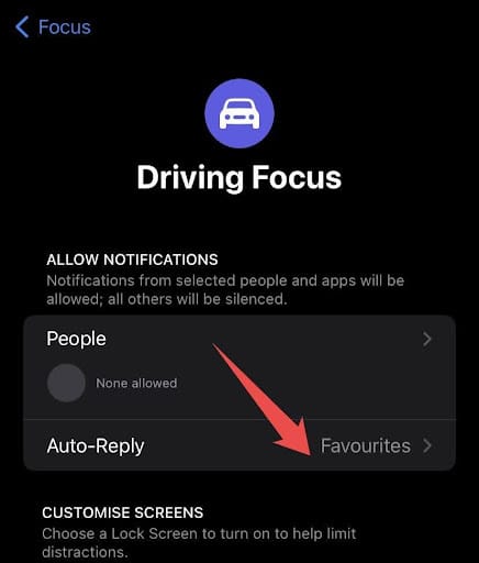 5. On the Driving Focus screen, click Auto-reply.