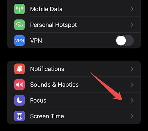 1. Scroll down from the top right corner of your screen to see your Control Center and click Focus.