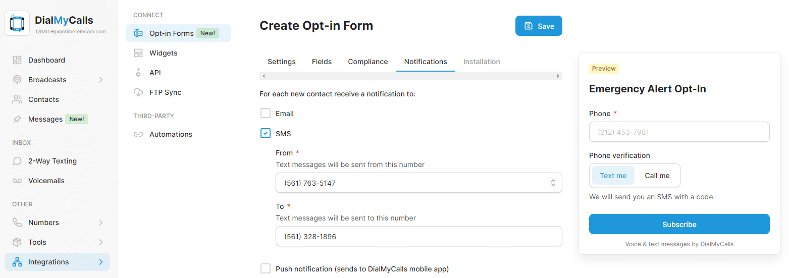 Opt-In Form Notifications