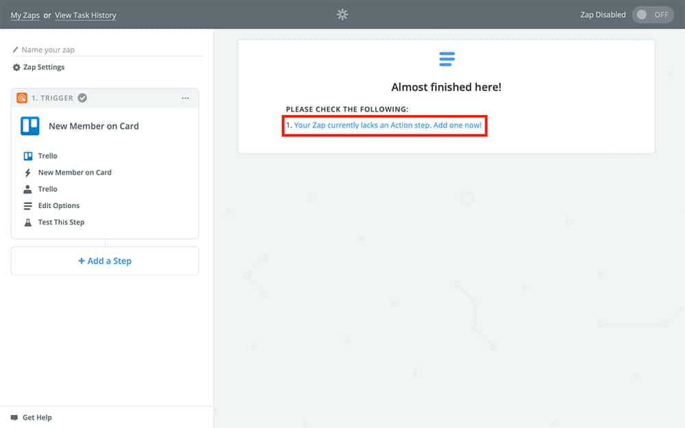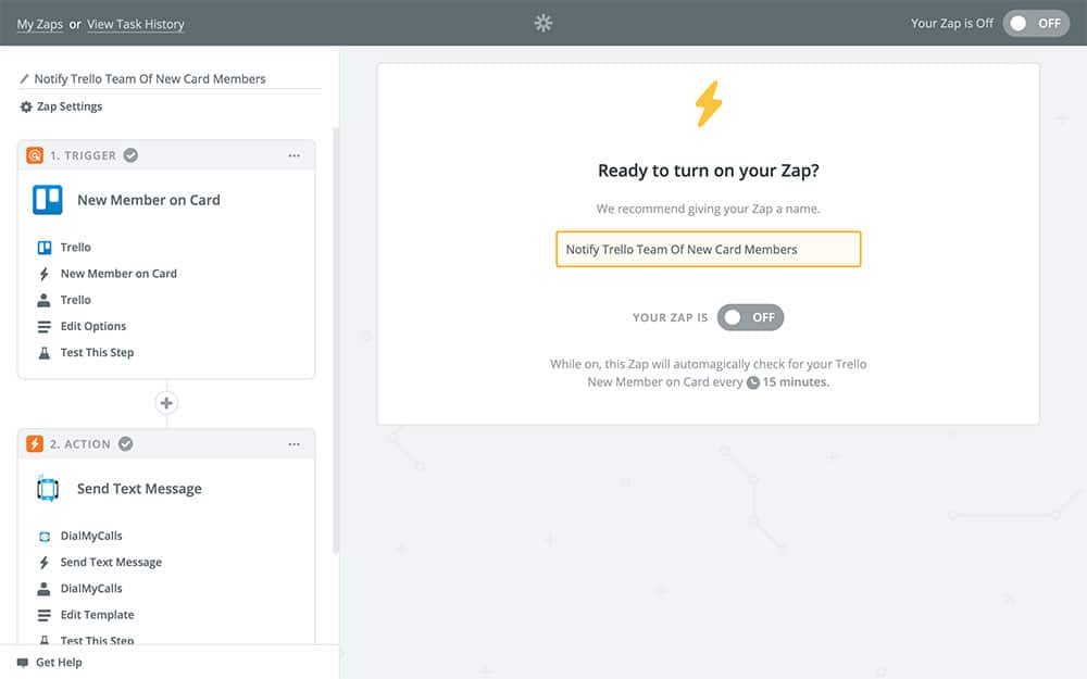 Keep in mind that once you turn this Zap on, your Trello team is going to start receiving notifications for all new members added to Trello cards until you turn this Zap off again.