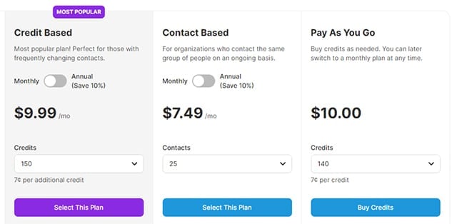 SimpleTexting offers flexible pricing plans to suit various needs and budgets. Plans differ in the number of credits provided, with options for additional features like dedicated numbers and extended SMS character limits.
